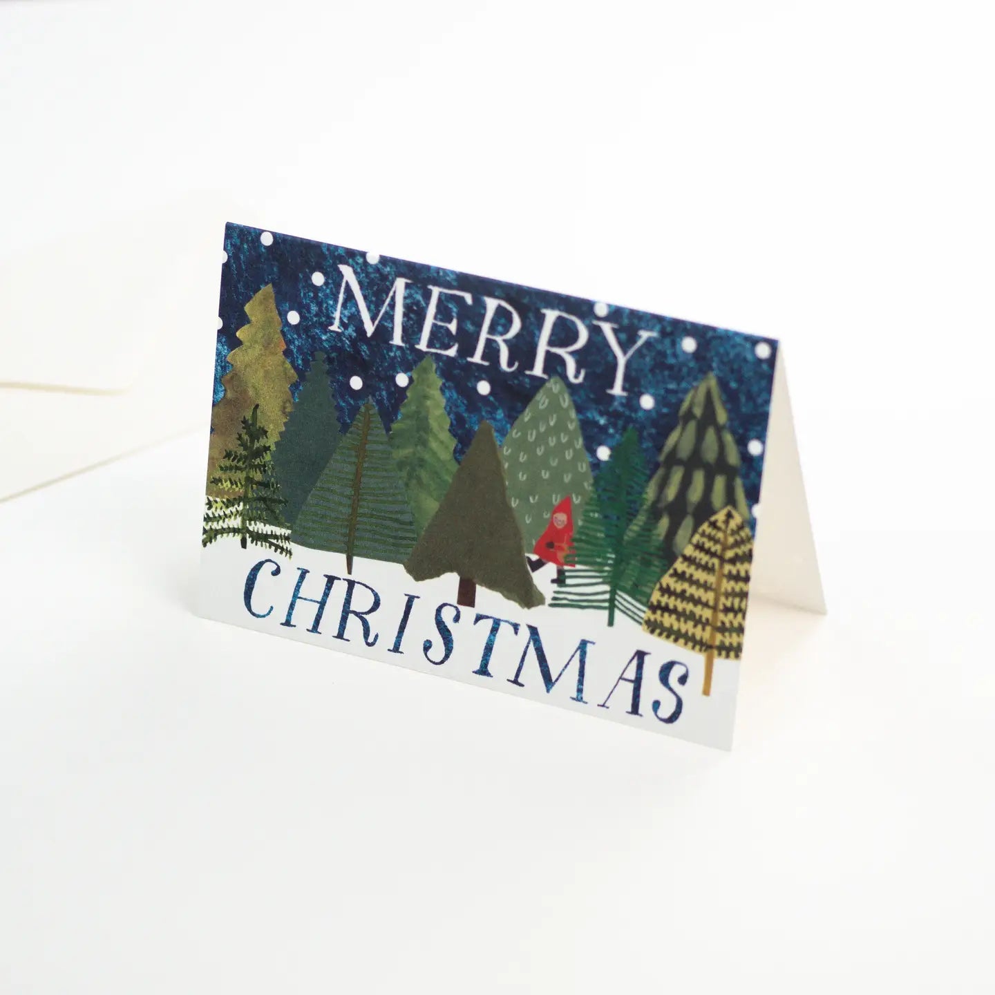 The perfect snowy winter woodland scene with a Merry Christmas message. Printed on high quality 300gsm card. Each card measures 11.5cm x 15cm when folded and comes in a handsome cream envelope, the inside is left blank for your own message.