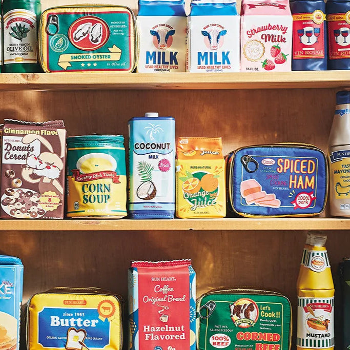 This series of unique pouches, inspired by food packaging, designed to tantalize your appetite and spark your imagination for their use! These multi-purpose storage pouches are finished with attention to detail.